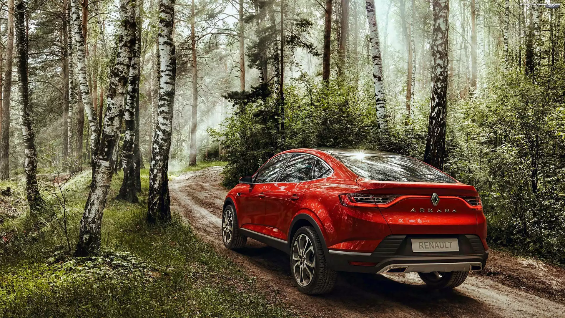 Las, Czerwony, Renault Arkana- Zdjęcia samochodów