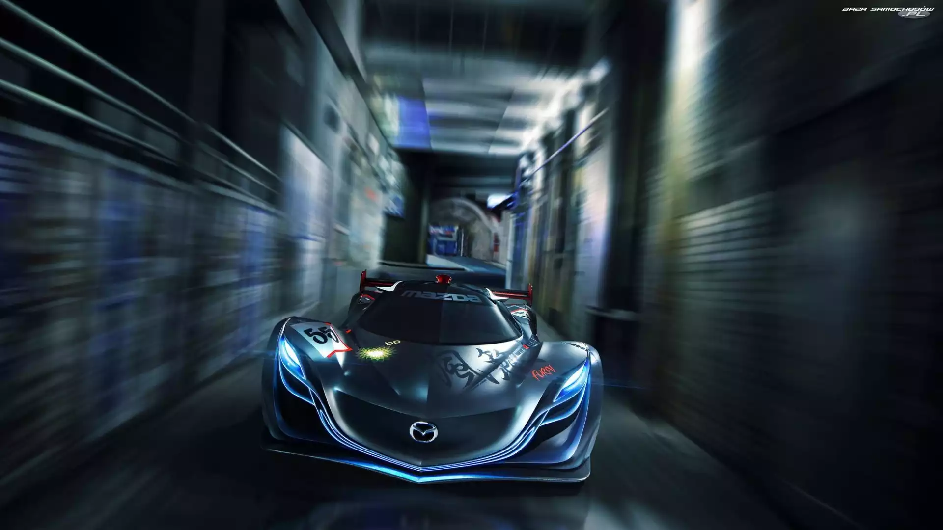 Mazda Furai, Wloty, Powietrza Samochód, Prototyp, Mazda, Rajdowy Fractalius, Mazda, Furai Spojler, Mazda Furai Budynki, Mazda, Furai Mazda Furai, Zakręt Ksenony, Tło, Mazda Furai, Szare Tunel, Mazda, Furai Sport, Mazda Furai, Tor Niebo, Mazda, Furai